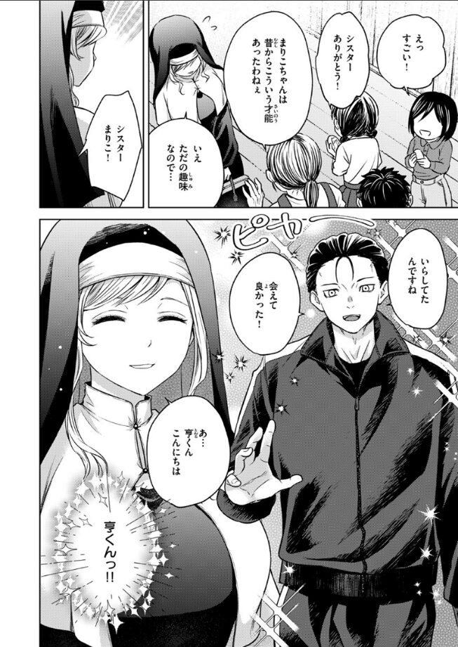 (手が触れただけなのに 濡れたわ…)まだ子供だった亨(とおる)にプロポーズされたシスターのまりこ。あれから6年、ボクサーとして活躍する亨にいつしか邪な感情を持ち、彼を目にするだけで身体が反応してしまうように。亨を見てはオナニーせずにはいられない日々を断ち切るため、会うことを避けていると、ある日、亨が告解室に入ってきて……。邪な気持ちで想い人を見てしまっていると告白してきた亨に抗うことができず、密室両想いSEXへ……♪