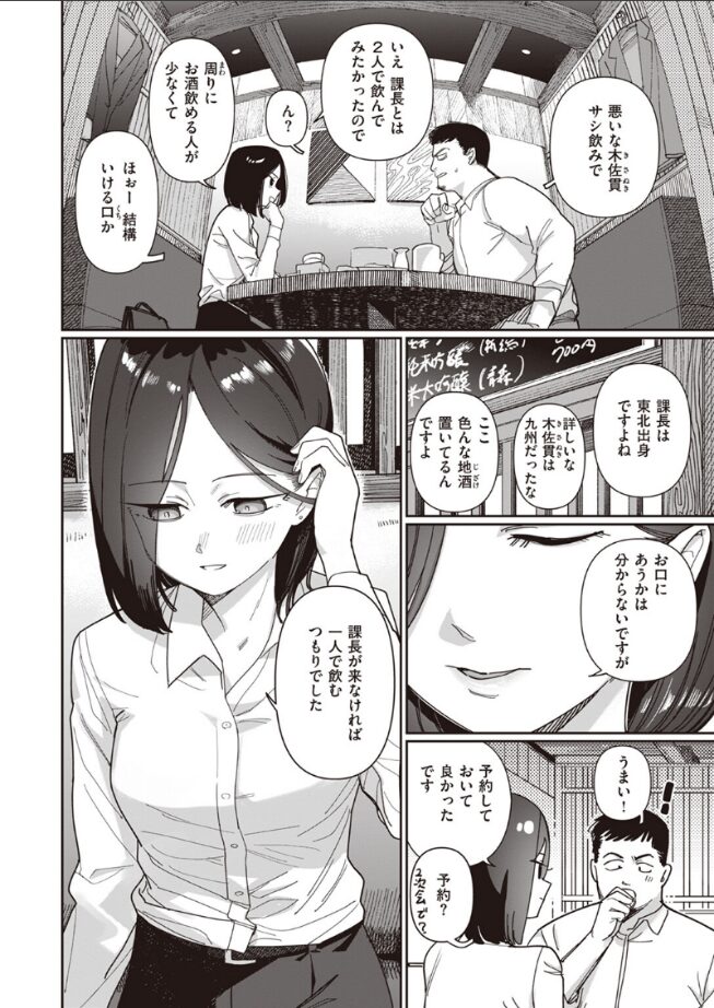 何とか課長をおとそうとしている木佐貫さんと、セクハラにならないように手を出さないように葛藤する課長の、すれ違いを含んだやり取りが面白かったです。 木佐貫さんはとても美人なので、普通の男だったら誘惑されたら一瞬で虜になってしまうと思います。しかもお酒の力も入ることによって、課長の理性がどんどん崩れていく様子を楽しめます。 上司と部下の関係を越えてしまう背徳感にドキドキしますし、日常の中に潜んでいるエロ要素をリアルに描いているようで良かったです。 木佐貫さんのスタイルも、スレンダー好きには刺さると思います。エッチ描写も、ねっとり濃厚な感じで興奮を誘ってくれるシーンが多くて大満足です。 |