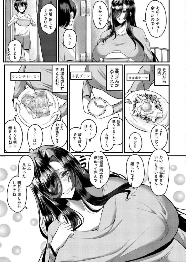 惹かれ合う孤独─母乳注入◆大学受験に失敗した浪人生の・大地(だいち)は鬱屈した日々を送っていた。そんな彼を見かねたアパートの隣人・遼花(はるか)。遼花は大地を訪ねる。「あの…シチュー余ったので…」それからというもの遼花は料理をこしらえては、大地に持ってくるのだった。ある日のこと、遼花は大地の世話を焼くべく、大地の部屋に押しかけてくる…。今までの料理には思いも寄らない隠し味が仕込まれていた…。肉感絵師・ZIRAN先生がコミックカイエンに久々の登場!