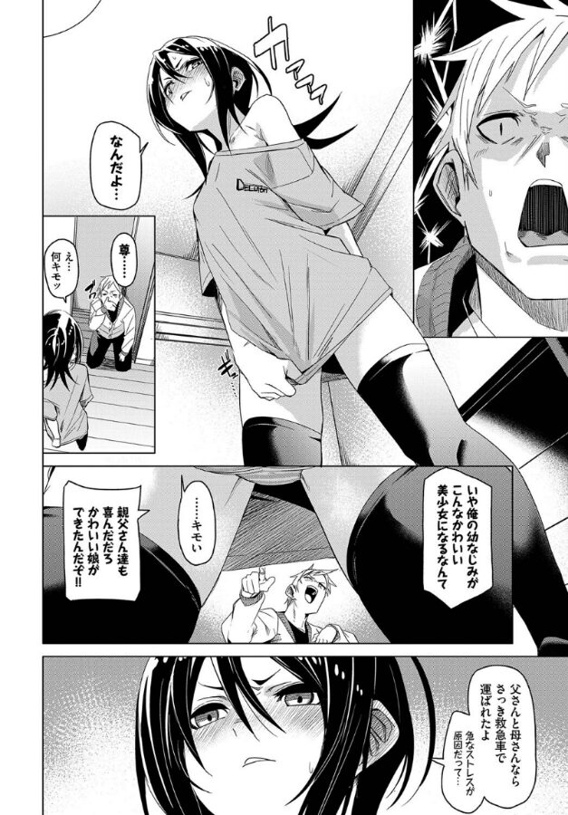TS潮吹きエッチ!朝起きると女のコになっていた悠真。女体が見たい幼なじみの津田に泣いて懇願され、しぶしぶおっぱいを見せることのなる。しかし津田は欲情を抑えきれず…!? 暴走した津田に身体をまさぐられ絶頂潮吹きっ!! 次第に悠真は身体だけでなく心も女のコになっていき自らちんこを懇願するようになる…。最新単行本も絶好調っ大人気汁ダク作家の新境地TS譚!!