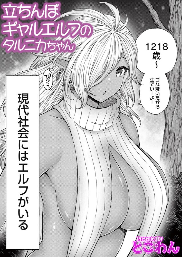 全身全‘霊’をかけた2ndコミックス『淫乱妖怪エクソシズム』大好評発売中のとこわんが描く都内某所立ちんぼ界隈の最新事情読み切り!!都内某所にある立ちんぼスポット。仕事で疲れた日はここに来て、いい子がいたら声をかけていたとあるサラリーマン。なんとその日は、エロ漫画でしか見た事がない露出が高すぎる服を着て客待ちをする長身ギャルがいた。その娘は若く見え、まさか未成年?と思いながらも恐る恐る年齢とゴム有り料金を確認する。すると「1218歳〜ゴム嫌いだから生でいーよー」とのんびりした口調で答えてくれた女の子。そう、現代社会にはエルフがいるのだ。どこかの誰かさんがエルフ世界との道を繋げそこから来たらしい。彼がエルフを見るのはエロ漫画以外で初めてで、思わずその豊満ボディに目が奪われてしまう。エルフは愛と優しさに溢れなんでも受け入れてくれるとネットで騒がれていた。そんな事を思い出しつつ彼が時間や場所や嫌なプレイの指定など確認すると「お兄さんのすきにしていーよー」と優しく微笑む彼女。今日は夢の様な一夜になりそうだ。果たして癒し系豊満ボディエルフとのエッチはどんな快感に包まれるのか…?